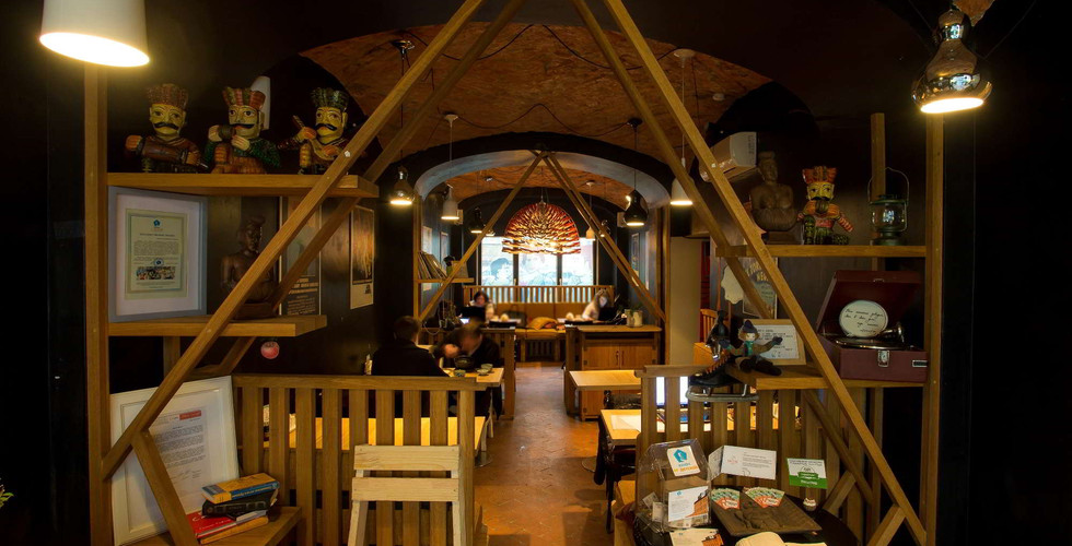 Готовят в кафе сами супруги по домашним рецептам. В меню — смесь корейской и европейских кухонь. На формирование такого сочетания повлияло происхождение хозяйки: Надежда Пак — кореянка, готовит с пяти лет и знает много традиционных рецептов и семейных кулинарных секретов. В дизайне старались отразить концепцию уютного домашнего кафе — стулья из необработанного дерева, много ламп с тёплым светом, на стенах — репродукции картин Ларионова и других художников.